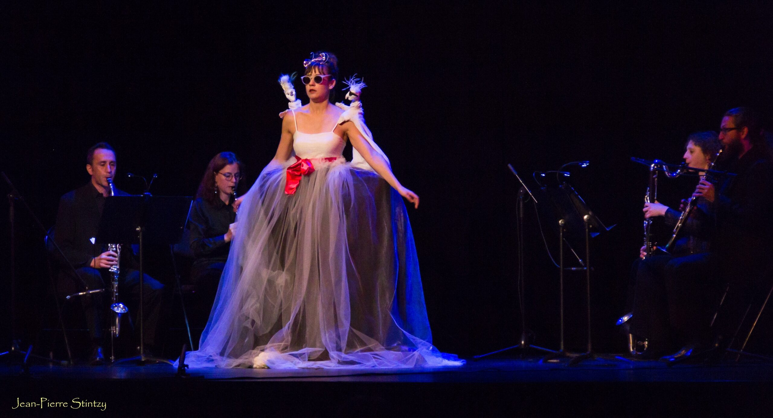 Ce grand classique musical pour enfants de Claude Debussy est narré par une conteuse malicieuse dont l’immense robe devient une véritable « boîte à joujoux » : tantôt source d’apparitions surprenantes, tantôt castelet dans lequel évoluent les marionnettes, tantôt décor à dimensions variables… L’histoire du triangle amoureux entre Polichinelle, le Soldat et la Poupée se déploie avec ludisme et féérie, portée par le souffle de quatre clarinettistes.